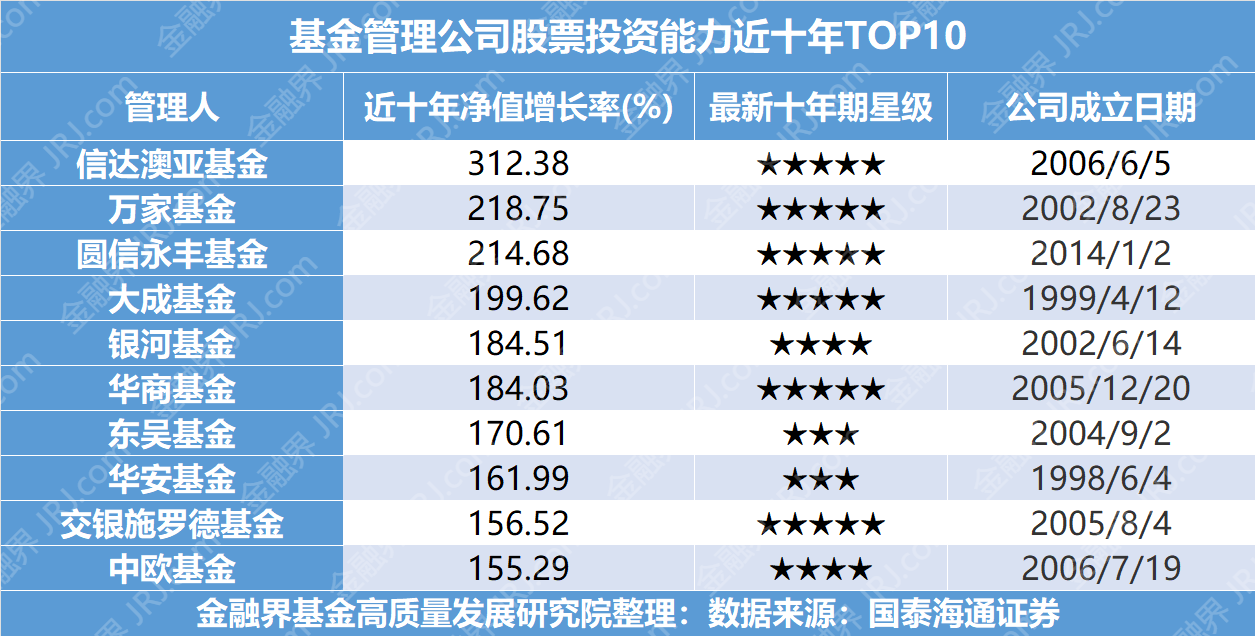 在波动起伏的股票市场中,短期表现或许有运气成分,但长达十年的业绩则更能检验一家基金公司真正的投资实力。随着今年前三季度行情收官,A股市场曾站上4000点,创下近十年新高,市场目光再次聚焦于那些历经牛