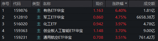 贵金属大幅反弹,现货黄金涨超5%,突破4920美元/盎司,现货白银涨逾10%,突破87美元/盎司。有色板块当日全线反弹,有色矿业ETF招商(159690)收涨4.98%,成份股湖南黄金涨停,盛和资源