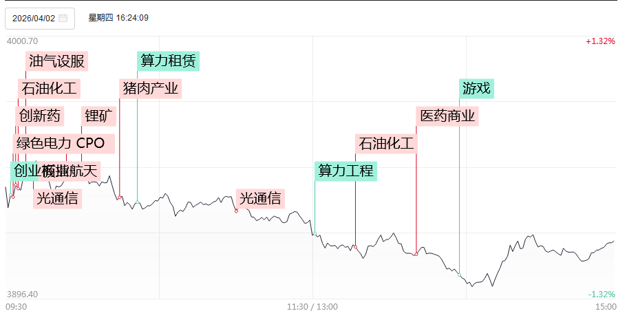 A股三大指数今日(4月3日)集体回调,截至收盘,沪指跌1%,再度失守3900点,报3880.10点;深证成指跌0.99%,创业板指跌0.73%。沪深京三市成交额约1.67万亿元,较昨日缩量超1800