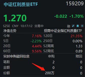 2月2日,两市低位震荡。数据显示,截至10时12分,中证红利质量ETF(159209)放量跌1.63%,据了解,该标的为2025年A股唯一涨幅超20%的红利类ETF。交投持续升温,成交额超4300万