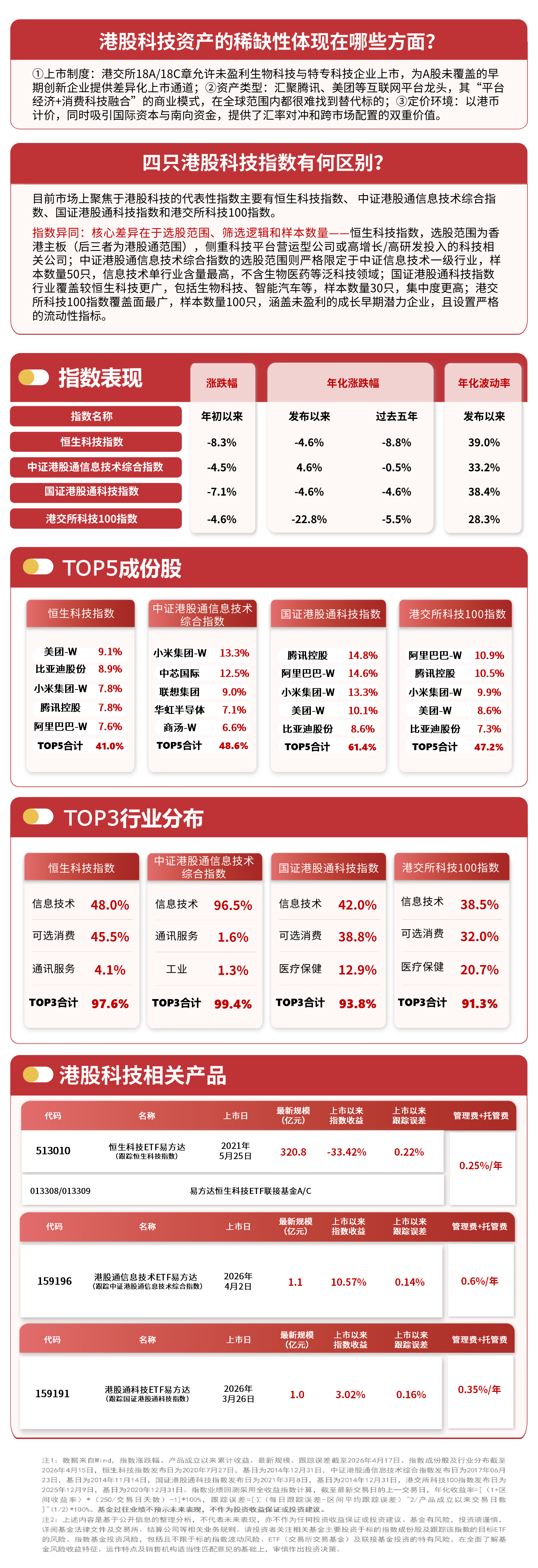 4月20日,港股科技板块震荡上行。截至收盘,中证港股通信息技术综合指数上涨1.0%,恒生科技指数上涨0.5%,国证港股通科技指数上涨0.4%,港交所科技100指数上涨0.3%,港股通信息技术ETF易
