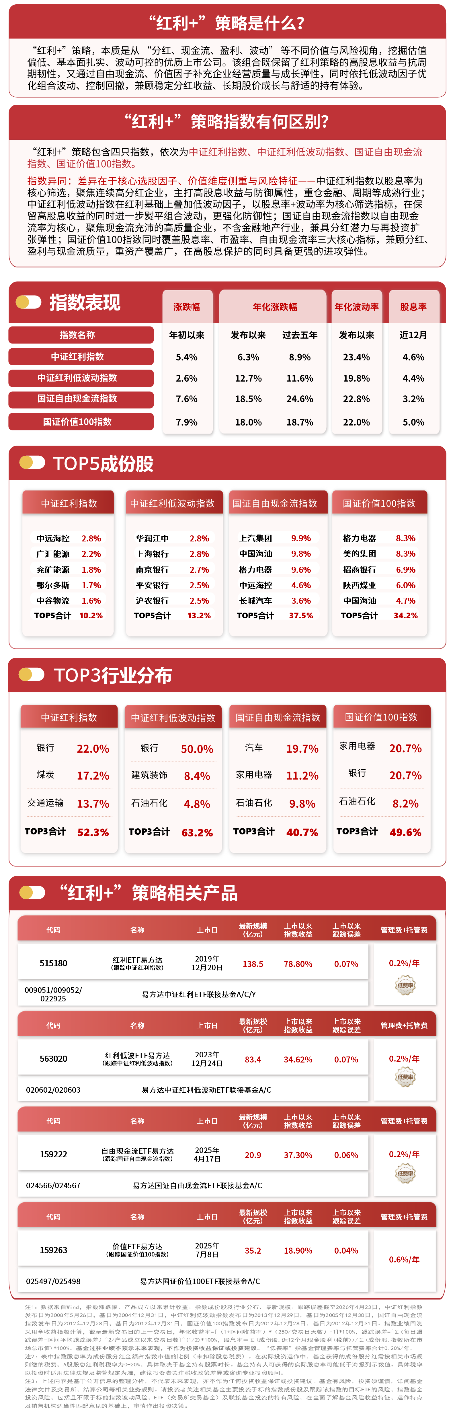 4月22日,市场低开高走,昨日表现强势的“红利+”策略指数今日低位震荡,截至收盘,国证自由现金流指数上涨0.02%,中证红利指数下跌0.01%,国证价值100指数下跌0.2%,中证红利低波动指数下跌