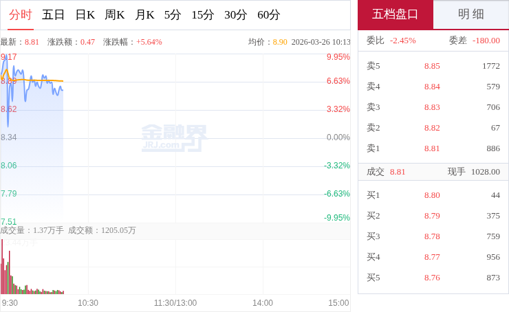交易所数据显示,3月27日,拓维信息开盘后整体维持窄幅震荡走势,盘中多数时间在均价线附近小幅波动,多空表现相对均衡,临近尾盘突然放量上攻,短时间内快速冲高,最终收势向好,尾盘资金拉升的特征十分突出。