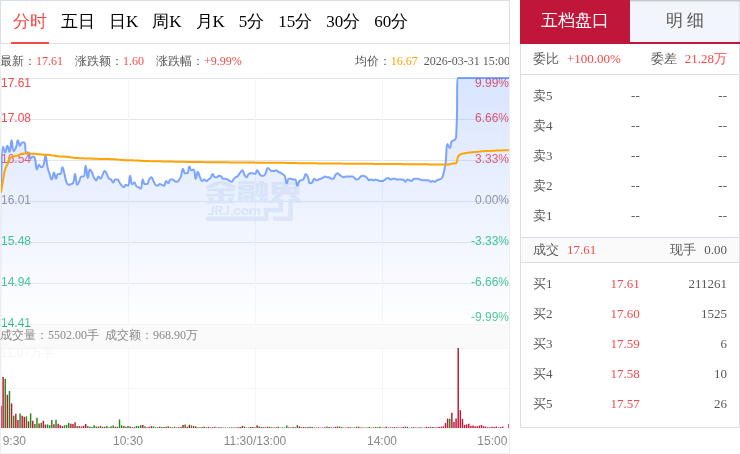 交易所数据显示,3月31日,圣阳股份开盘后短暂冲高,随后整体呈现震荡回落的走势,大部分时间在均价线下方运行,午后维持窄幅震荡态势,临近尾盘阶段突然放量拉升,强势封死涨停,整体走势极为强劲,尾盘阶段多
